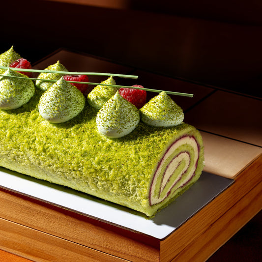 Pistachio Raspberry Roll Cake